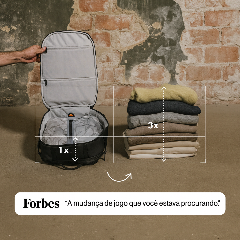 📦 VácuoKit™ — Poupe +60% de Espaço na Mala!
